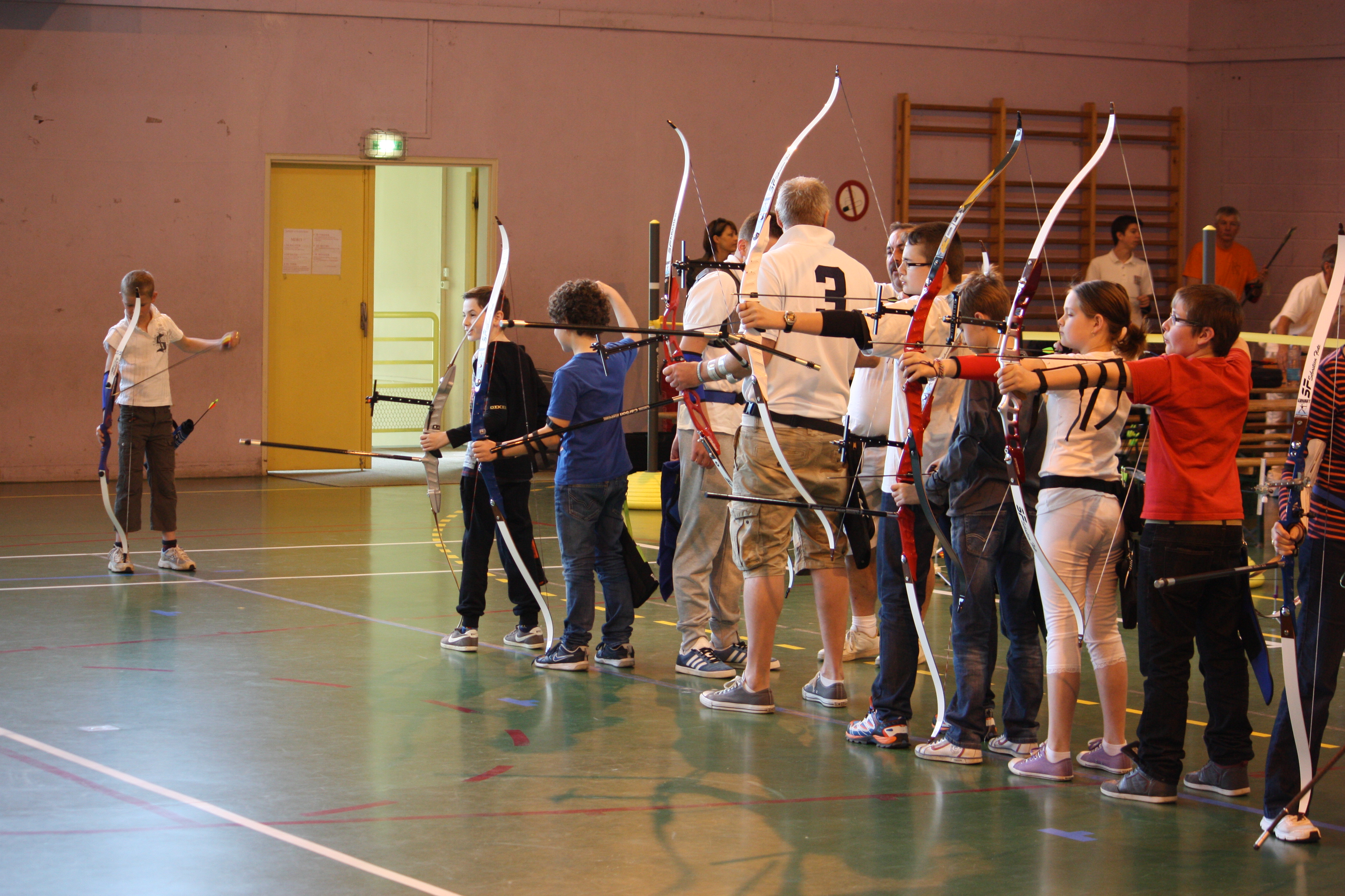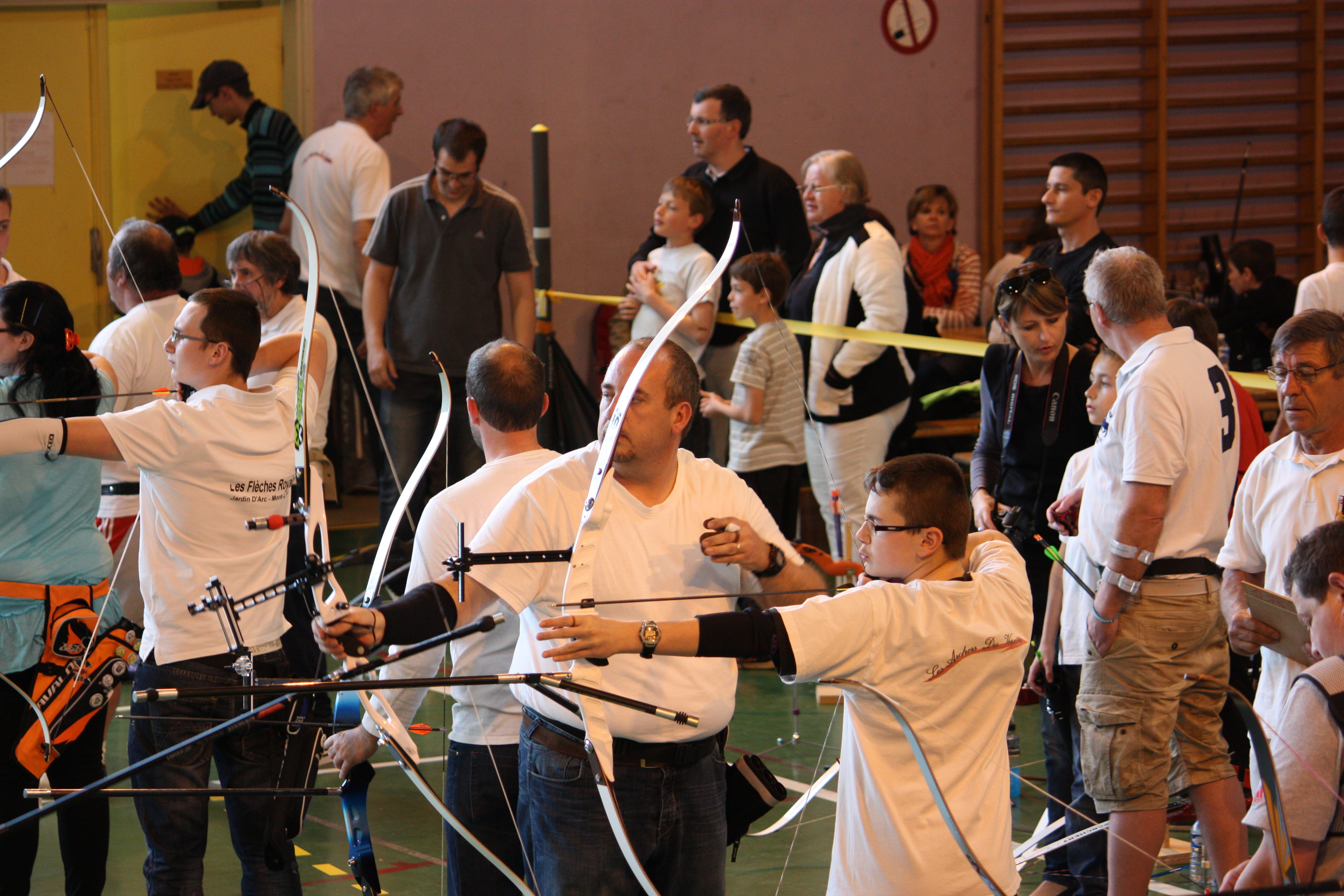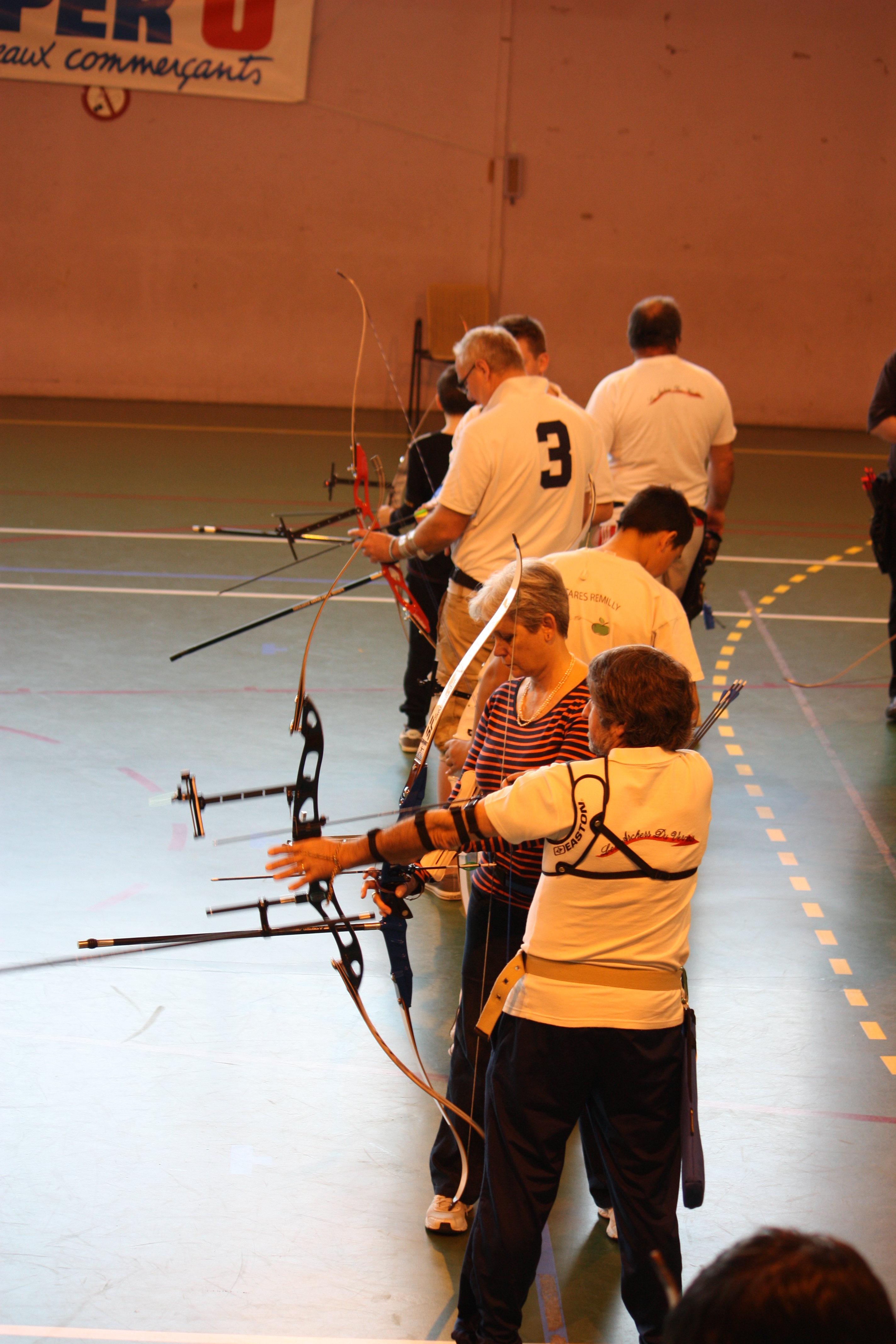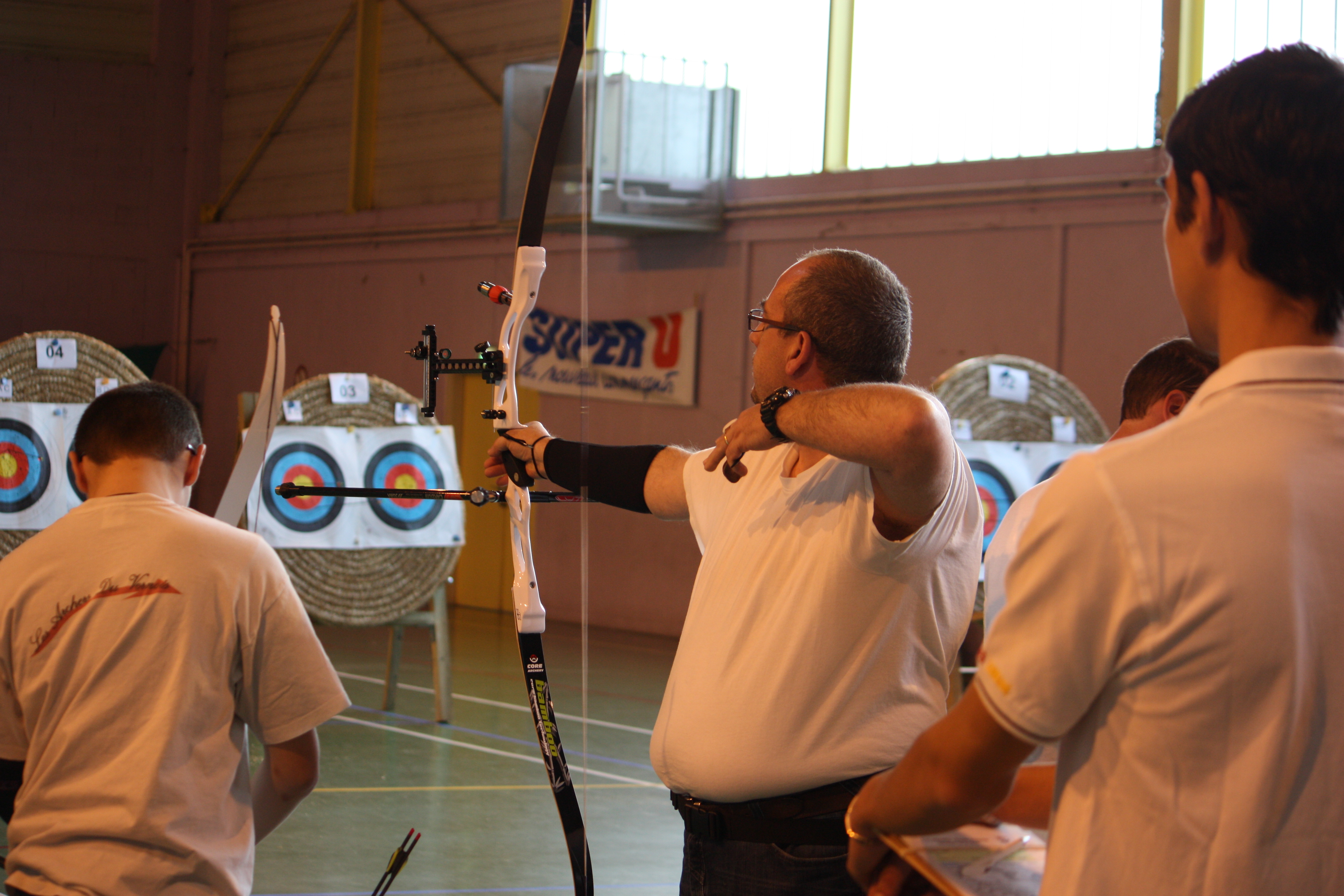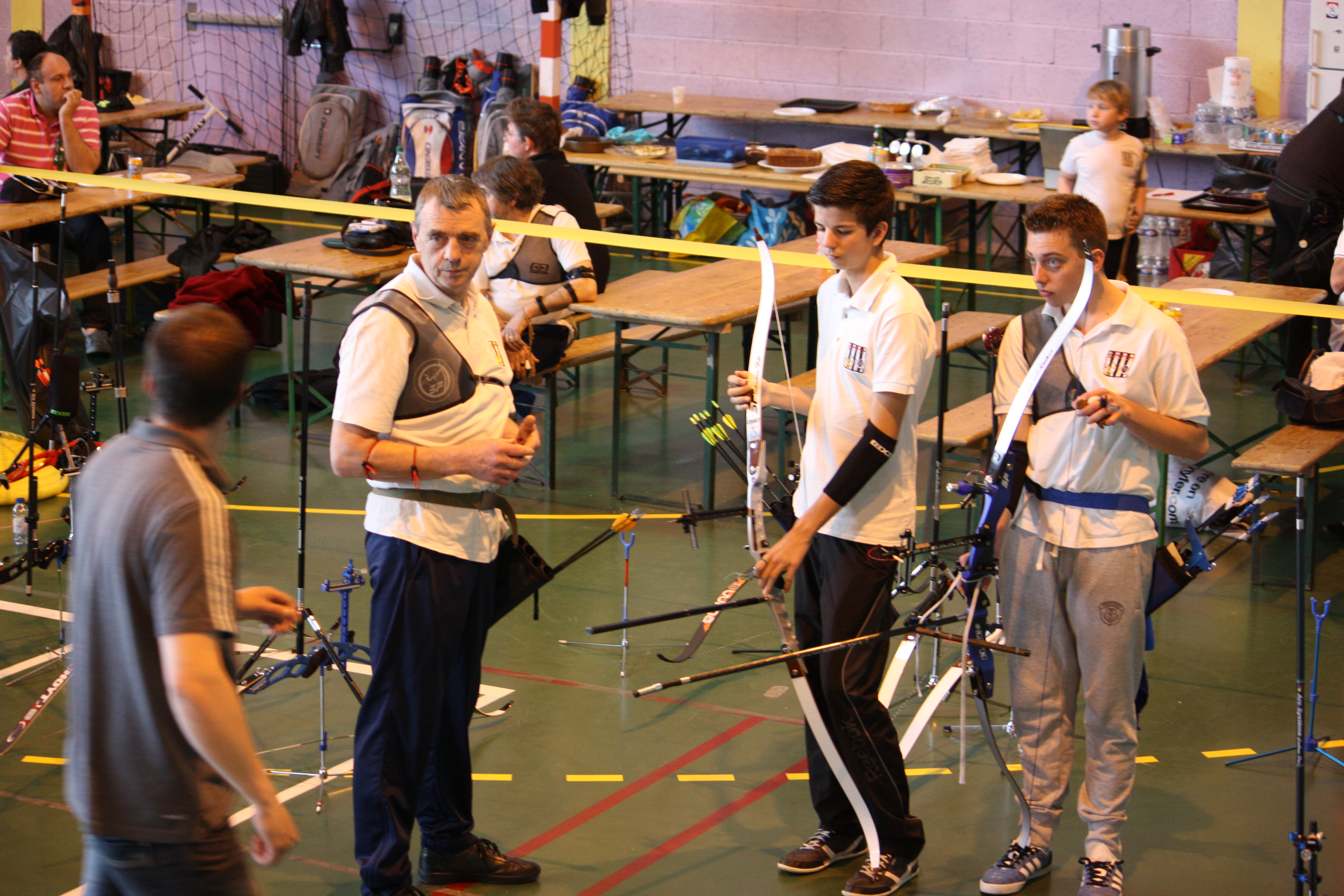 Comme à l’accoutumée, le club de Verny a sympathiquement prêté des filets de protection à placer derrière les cibles. Vers 10h30, les premiers compétiteurs arrivent et peuvent s’entraîner sur les cibles disposées à différentes distances : 6, 8, 10, 12, 15, 18, 20 et 25m. Grâce à cette compétition les archers pourront aussi tenter un passage de niveaux. C’est maintenant l’heure de l’entrainement :