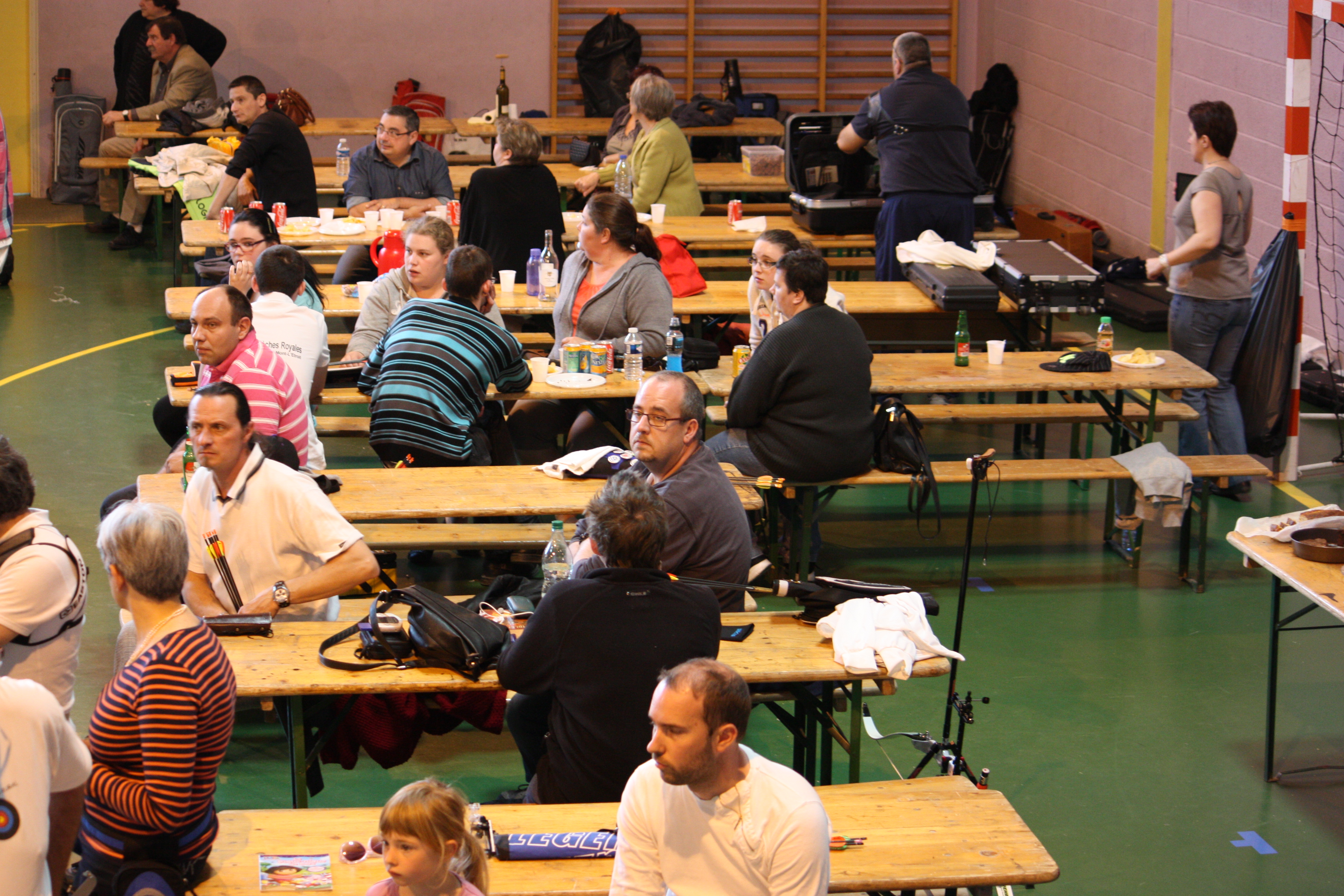Chacun s’installe pour prendre son repas… et le pas de tir est bien vide… finalement ça creuse le tir à l’arc.
